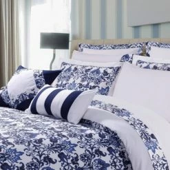 New 💯 Damask Cotton Flannel Printed Oversized Duvet Set – Tribeca Living Navy 💯