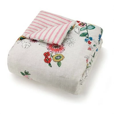A garden grows on the soft cotton sateen of the Vera Bradley Coral Floral 3 piece comforter set while a preppy coral stripe on the reverse makes this bedding set casual chic. Made of 260 thread count, 100% cotton, the comforter has polyester fill. Machine wash in cold water, gentle cycle. Do not use bleach. Tumble dry low. Use cool iron as needed.
