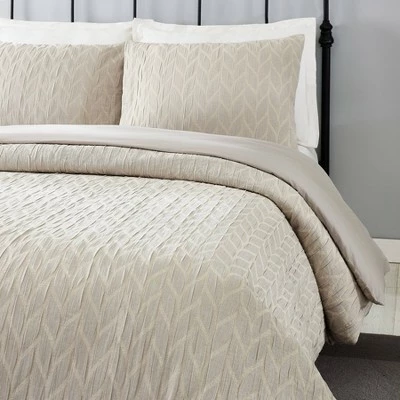 A goes-with-everything grey color and sophisticated braid pattern make the Laurel & Mayfair Emmett 100% cotton duvet cover an all-around style star. Matelasse construction adds texture and resists wrinkles for a look that is as easy care as it is beautiful. Machine wash separately in cold water, gentle cycle. Do not bleach. Tumble dry, low heat. Use large capacity machine as needed.