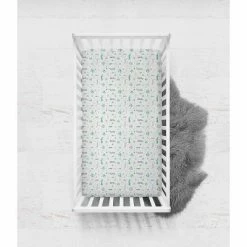 - This Bacati 3-piece Crib Set Includes Reversible 4 layered muslin lux blanket/Playmat (33 x 43 inches), Muslin Crib fitted sheet (52 x 28 x 6 inches) and Cotton Percale Crib Skirt/Dust ruffle (13 inch drop) in fun, colorful and signature prints in 100 percent cotton muslin fabrics. Designed in United States by Experienced Designers. Many coordinating items available to purchase separately in this Bacati Soccer Muslin Green Gray Bedding Collection.