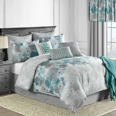 - Includes: Bed Skirt, 2 Euro Shams, Comforter, 3 Decorative Pillows, Blanket, 2 Shams, Throw