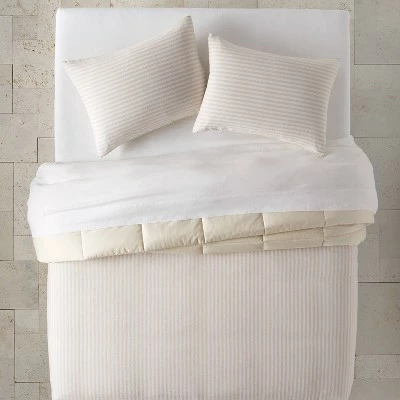 Drift off to sleep in the timeless style and endless comfort of the Heavyweight Linen-Blend Stripe Comforter & Sham Set from Casaluna™. Made of a soft fabric blend with 100% cotton backing for year-round use, this three-piece bedding set includes a soft-filled comforter adorned with a striped pattern and a textured look for a versatile style that easily matches with any decor theme. A pair of matching pillow shams completes the top of your bed with added depth and dimension. Plus, the ensemble is machine washable for easy care.
