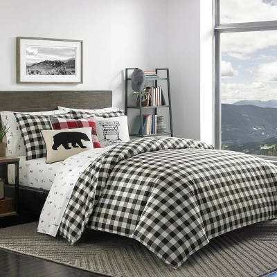 A classy and cozy bedroom is all it takes to refresh you after a long days work. And the Black Mountain Plaid Comforter Set by Eddie Bauer will do just that for you. Made of cotton with a fluffy polyester fill, the set includes a twin comforter and 1 sham included in twin/twin xl set. It features a black and white checkered pattern that will give your space an elegant look. Sleep tight, sleep right.