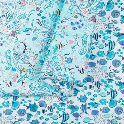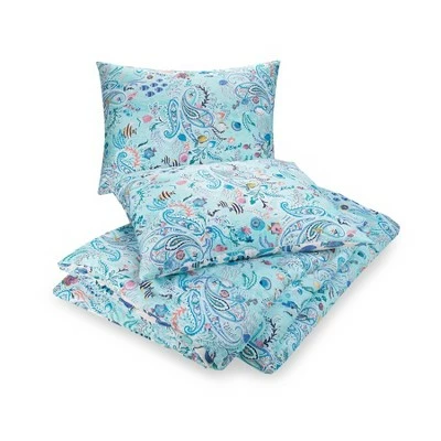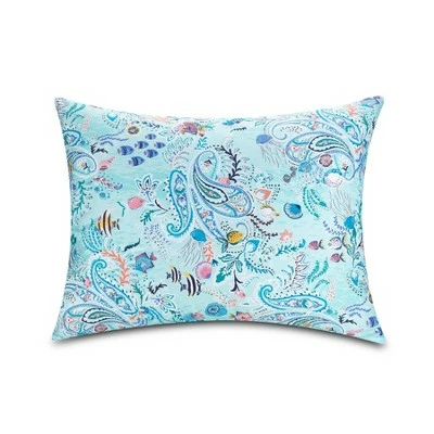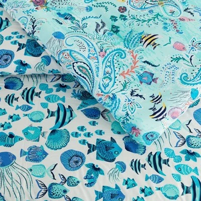 The heart of the Vera Bradley company is a desire to bring meaningful beauty to the world. Their bright brilliant designs are offered in bedding as well as their bags. With the Paisley Wave comforter you can bring the ocean to your room. Clusters of paisleys toss about like waves with sea life swimming around. The multicolored sea life lives on an aqua colored ground. The comforter reverse teems with blue fish and sea life on a crisp white ground. The shams include a zipper closure that ensure easy access. The comforter is all silky soft cotton sateen with a polyester fill.