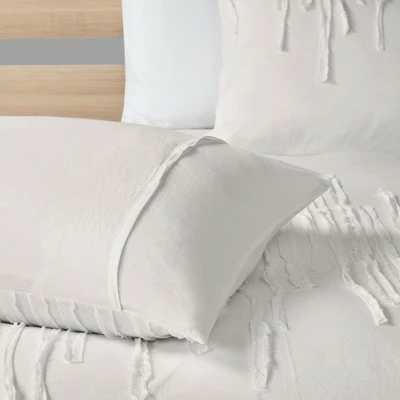 The Makenna Cotton Duvet Cover Set offers a simple, chic update to your bedroom decor. This soft 100% cotton duvet cover features self-fabric taping strips sewn to the top of the bed that add dimension and create a contemporary look. The matching shams (1 in Twin/TwinXL) mirror the design of the cotton duvet cover, while two decorative pillows complete this beautiful contemporary bedding set. Made from enzyme washed fabric for increased softness, this bedding set is OEKO-TEX certified, meaning it does not contain any harmful substances or chemicals to ensure quality comfort and wellness. Button closures on the duvet cover secure a padded insert (NOT included) within the duvet cover and internal corner ties prevent it from shifting.