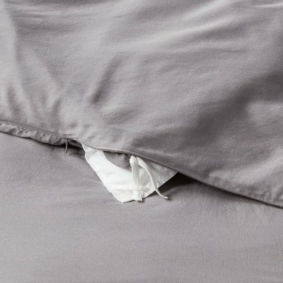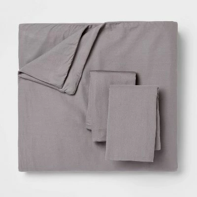 Transform your bed into a cozy and comfy oasis you’ll love relaxing and sleeping in with this Washed Cotton Sateen Duvet & Sham Set from Threshold™. This bedding set includes a pillow sham and a matching duvet made from sateen weave cotton to offer soft, all-season use. The zipper closure helps the duvet cover stay in place, and the envelope closure on the sham makes it easy to cover your pillow. Mix and match this bedding set with sheets and decorative pillows to create a stylish and comfy bedroom space.