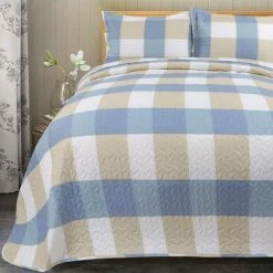 Best deal βοΈ 3 Pieces Plaid Polyester Lightweight Soft Coverlet Bedspread Set – PiccoCasa β