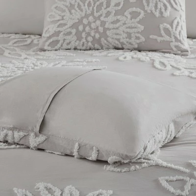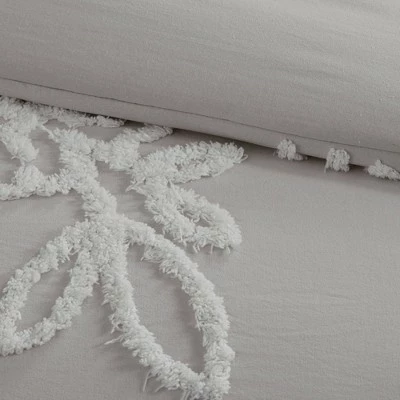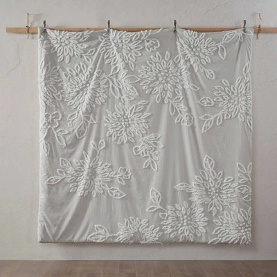 Snooze through the night in luxury and comfort with the 3-Piece Danica Tufted Cotton Chenille Comforter Set. This decorative comforter set comes with a comforter and coordinating shams, each featuring white floral chenille patterns on a gray background on the front, with a solid design at the reverse that gives a stunning makeover to your bedroom. Made from from 100% cotton, this floral comforter set not only feels soft, but also keep you tucked in comfort as you hit the lights off to snooze the night away. Simply add printed floral sheets and throw in colorful pillows to bring a lively contrast to your sleeping oasis. Due to the nature of the chenille fabric, some shedding will occur naturally in the first 3-4 washes.
