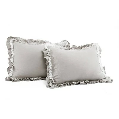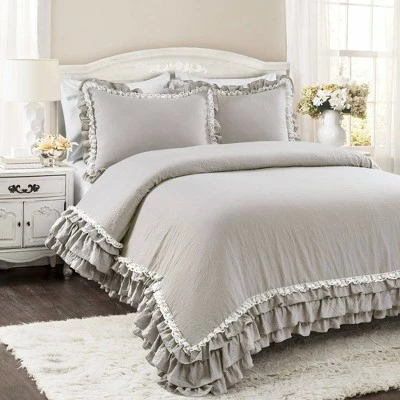 This charming Ella Shabby Chic Ruffle Lace 3 Piece Comforter Set will add a touch of feminine style to any bedroom in your home. The lace trim and layers of ruffles add flair to an otherwise minimalist look that can also fit into farmhouse, shabby chic, traditional or French Country themes. The ruffles on the comforter and the pillow shams create a whole new dimension to the bedroom. The Ella Shabby Chic Ruffle Lace 3 Piece Comforter Set has a calming effect, adding a touch of elegance and loads of style with its frilly look on solid color. The Ella Shabby Chic Ruffle Lace 3 Piece Comforter Set includes a soft and luxurious 230 GSM comforter and two matching pillow shams. The pillow shams even have the ruffled edges with the lace trim! It is available in both King and Full/Queen sizes. Due to the delicate nature of the ruffles and the lace trim, we highly recommend that you dry clean your comforter and shams. Part of the Ella Ruffle Collection. Oeko-Tex Certified.