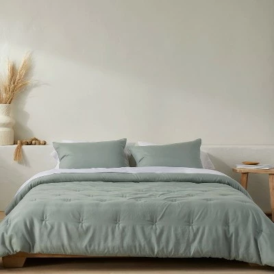 Set up a cozy and welcoming sleeping nook with this Lyocell Cotton Blend Comforter & Sham Set from Casaluna™. This decorative bedding set includes one solid comforter with tack-stitch quilting and two matching shams, each made from a soft fabric blend to offer you year-round cozy comfort as you drift off to dreamland. Featuring a solid design, this soft comforter set is easy to coordinate with a variety of decor styles. Simply pair it with the sheets of your choice and toss a few printed pillows to bring an inviting touch to your bedroom decor.
