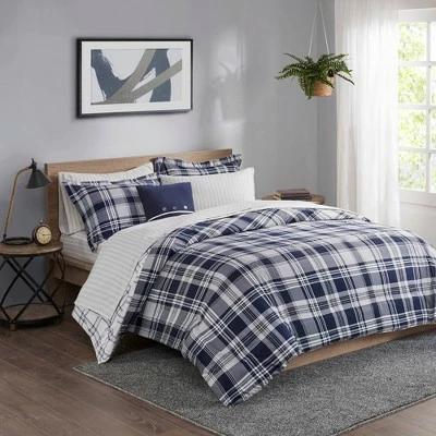 Restyle your bedroom with the Leroy Reversible Complete Bedding Set. The reversible comforter and shams (1 in Twin Sizes) feature a plaid print on the face and a white plaid print on the reverse, for a charming casual look. A coordinating square decorative pillow adds a finishing touch to the comforter. Also included is a sheet set, complete with a flat sheet, fitted sheet, and 2 pillowcases (1 for Twin Sizes). Bringing the best in health and wellness, this bedding set also features an anti-microbial treatment that provides built-in freshness protection, reducing the growth of odor causing bacteria and keeps fabric lasting longer. This bedding set is also OEKO-TEX certified, meaning it does not contain any harmful substances or chemicals, ensuring quality comfort and wellness.