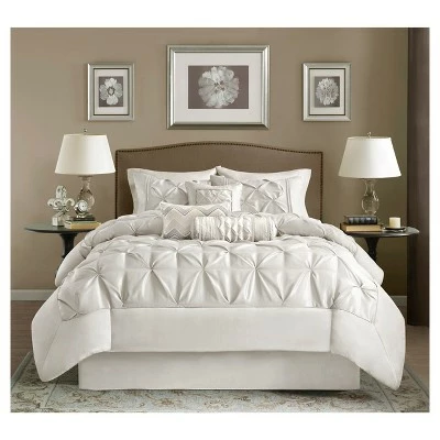 Create a cohesive look between your bedroom and bathroom with the Piedmont bedding Set and Bath Accessories collection. This bath and bedding collection includes a 7 piece Comforter Set and shower curtain. The collection is made from 100% polyester polyoni and has pieced fabric sewn together to give this set dimension. It is finished with a smooth edge of fabric that creates a beautiful border around. With multiple color options for the shower curtain, you can opt to have the same look from room to room or to mix things up by maintaining the pattern of the bedding pieces but switching up the color.