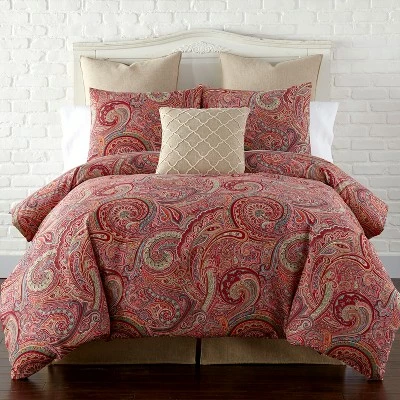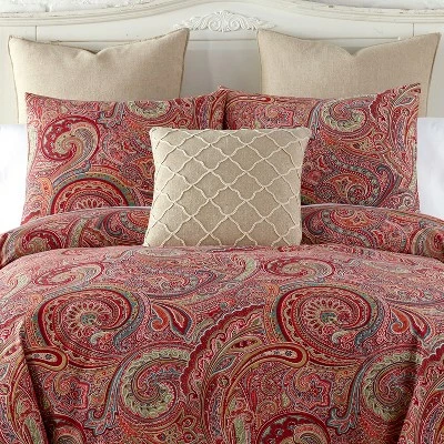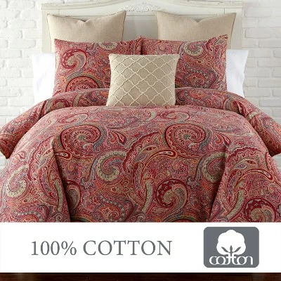 The Spruce Red Duvet Cover Set by Levtex Home is vibrant and sophisticated.Β Offered in red, tan, grey, and burgundy, this design will immediately transform your bedroom.Β Made with a durable cotton, this duvet cover set features a rich, intricate paisley pattern in rich burgundies, reds, and tan. It has a rich, traditional paisley on the front and the same on the reverse.Β It closes with easy to use, durable buttons. The Spruce Red Duvet Cover Set is machine washable and includes the duvet and standard pillow cases.Β Enjoy this for years to come!