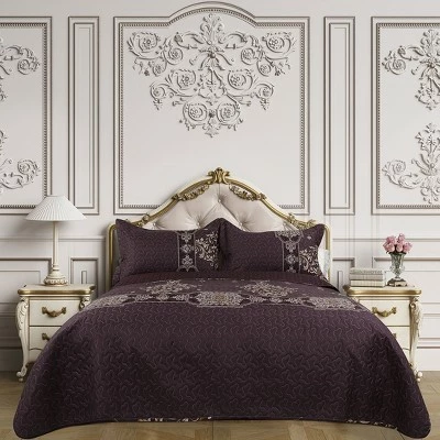 This PiccoCasa Dark Purple Coverlet Set is made with 100% superior quality polyester and is available in three sizes (Twin/Queen/King). Dyed by reactive printing with a Dark Purple Luxury Floral pattern, the coverlet has better moisture absorption than ordinary printing, high color fastness, and not easy to fade after multiple washing, not easy to pilling and shrink. The quilting process makes the bedspread filler even and not easy to agglomerate, which can firmly fix the edge. Durable and non-fluffing. The highest washing temperature is 30β, hang dry, do not bleach, do not dry cleaning, tumble dry on low with similar colors, and low-temperature iron when needed. Please allow for slight color differences due to the monitor resolution variations and studio light brightness. Variability of 2-3 cm is possible due to the manual measurement process.
