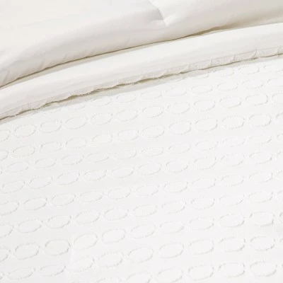 - The comforter features an all-over clipped jacquard dot design on a white textured fabric, creating a chic modern look.