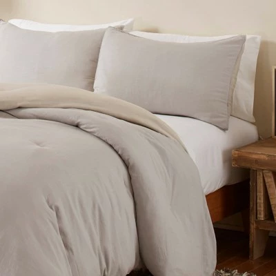 Incredibly soft washed cotton comes together in this set to add everyday comfort to your bedroom. The ED Ellen DeGeneres Washed Cotton solid comforter set features a solid design that will bring understated modern style to any home. With its pale pastel Gray face and solid khaki reverse, this set offers many versatile bedroom looks. Pair this set with additional ED Ellen DeGeneres European shams and decorative pillows for a more complete bedroom look. Comforter features a polyester fill and the included shams feature an overlap closure. Full/queen comforter set includes: one comforter (96″L x 92″W) and two shams (21″L x 27″W). King comforter set includes: one comforter (96″L x 110″W) and two shams (21″L x 37″W).