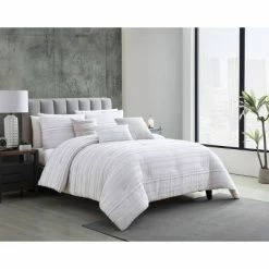 - Includes: 2 Decorative Pillows, Bed Skirt, Comforter, 2 Shams