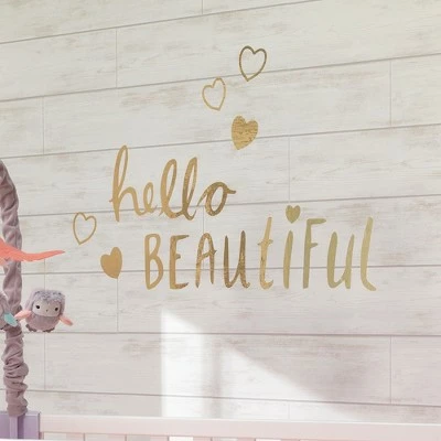 - Large gold metallic wall decals which include the words, βHello Beautifulβ along with five metallic gold hearts add the perfect decorations for your little girl nursery.