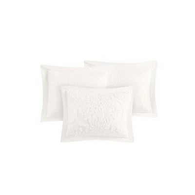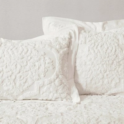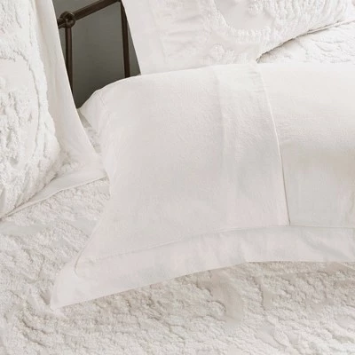 The Eugenia 5 Piece Tufted Cotton Chenille Damask Daybed Set offers the perfect cottage touch to your bedroom decor. The cotton daybed fits a Twin size mattress and features a tufted chenille damask pattern, for an elegant shabby chic look. Three matching shams mirror the design of the daybed, while a solid bedskirt adds the finishing touch to complete this cottage daybed bedding set. Machine washable for easy care, this bedding set is OEKO-TEX certified, meaning it does not contain any harmful substances or chemicals to ensure quality comfort and wellness. Due to the nature of the chenille fabric, some shedding will occur naturally in the first 3-4 washes.