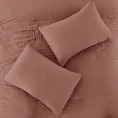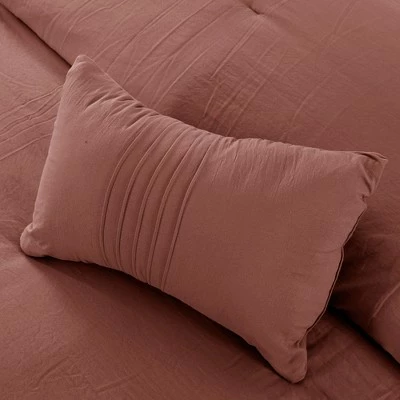 Soft texture and easy living is what we are all craving these days; a relaxed atmosphere that allows us to take a deep breath! Beck bedding set is available in three trendsetting colors that will suit any style of livingβ¦. A charcoal grey for a deep rich look- pair your favorite colors here to create a look that fits your personality; everything from blues, red, greens and more will look great! Rosewood; a deep rosy salmon – the βwinterβ version of the ever popular blush. Spa, a color that lends itself to itβs nameβ¦ allowing you to create a sanctuary in your bedroom, a place of true comfort. The four piece bedding set comes in a self bag, that can be used for years to come for all your βtotingβ needs – whether it is a weekend overnight, beach bag, shopping bag – a sustainable solution to packaging. This set includes a solid comforter made of washed microfiber, two matching shams and a 12 x 18β rectangle decorative Pillow Cover with vertical pleating down the center for an added touch.