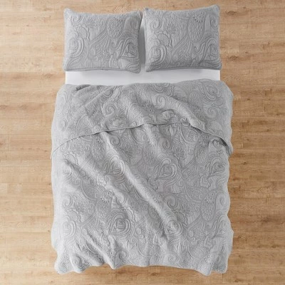 The Perla Twin Quilt Set by Levtex Home is inspired by classic paisley scarves. This paisley quilt design will immediately transform your bedroom. Made with the softest lightweight cotton, this quilt features an intricate embroidered grey on grey paisley pattern, reversing to itself. The Twin Quilt Set is machine washable and includes the quilt (68x86in.) and one standard pillow sham (26x20in.) Enjoy this for years to come!