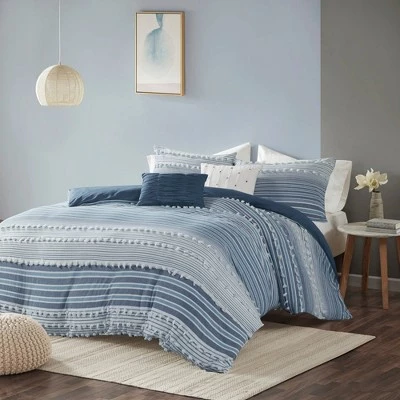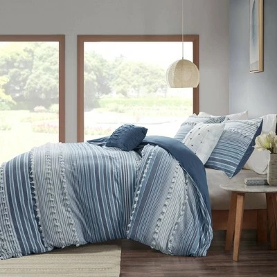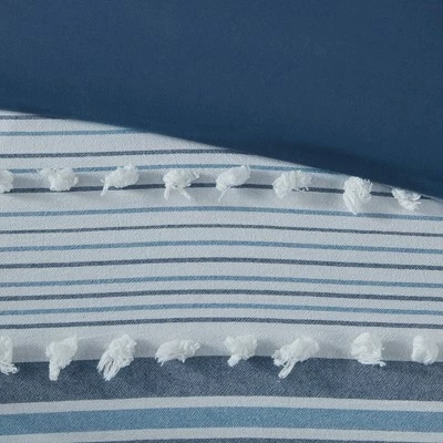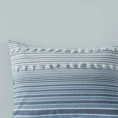 Give your bedroom a soft casual update with the Corey Cotton Duvet Cover Set. The cotton clipped jacquard duvet cover features yarn-dyed stripes, for a soft and alluring look. Matching shams (1 for Twin/TwinXL) mirror the design seen on top of the bed, while two decorative pillows with hypoallergenic polyester filling add the finishing touches. This bedding set is also OEKO-TEX certified, meaning it does not contain any harmful substances or chemicals to ensure quality comfort and wellness. Button closures on the duvet cover secure a padded insert (NOT included) within the duvet cover and internal corner ties prevent it from shifting.