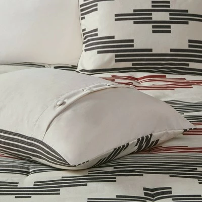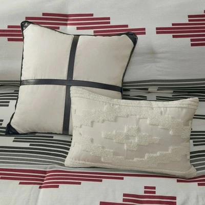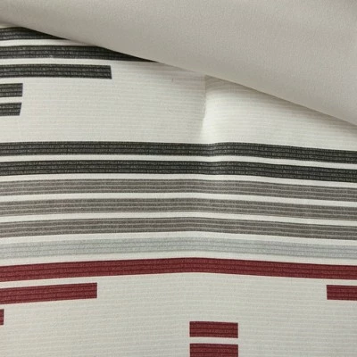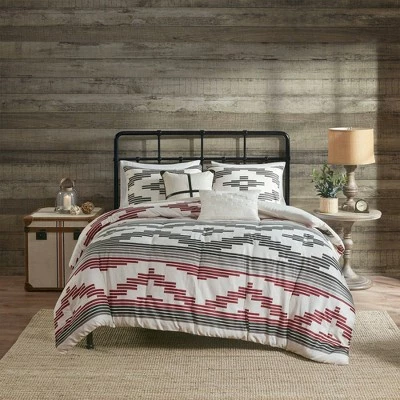 The Simons 5 Piece Comforter Set offers a cozy cottage update to your bedroom decor. This oversized comforter features a textured, red and grey herringbone print with a solid reverse that creates a southwestern-inspired cabin look. The 2 matching shams showcase a coordinating pattern to complement the face of the comforter, while 1 oblong and 1 square decorative pillow add the finishing touches. With its inviting country charm, this comforter set transforms your bedroom into a warm and comfy retreat.